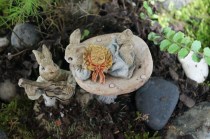 Anything in miniature is always intriguing. With spring being so fickle, frost warning tonight-ugh, I have put together a few terrariums and have picked up a few items to put together a fairy garden. I have scoured thrift stores and